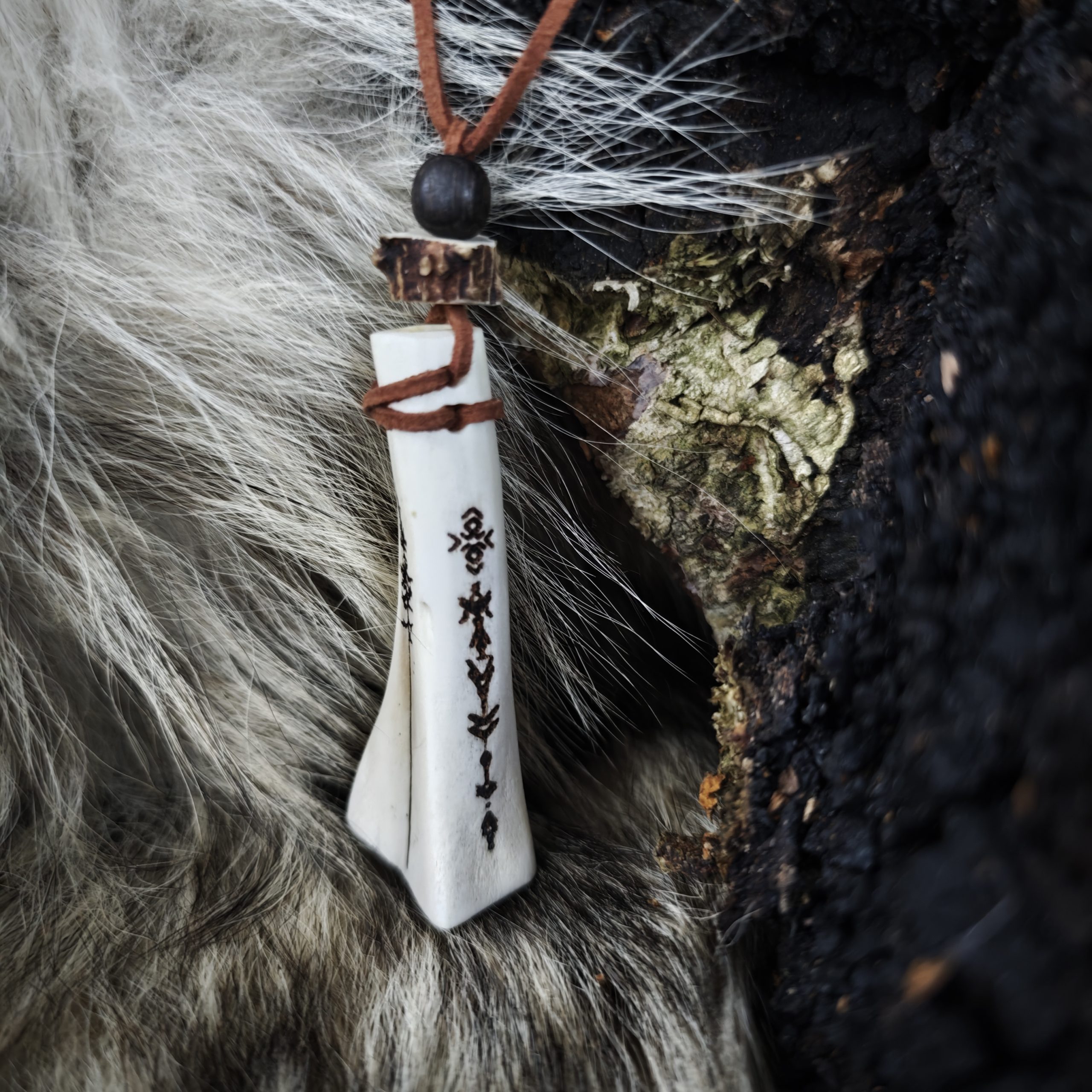 Susi luule põletatud kuusepuu ja põhjamaine väe-kaitse märkide rida. Väekees veel tamme ja musta tamme helmed, metskitse sarve seib. Luuripatsi pikkus ca 8,7 cm. Pael on reguleeritav.
