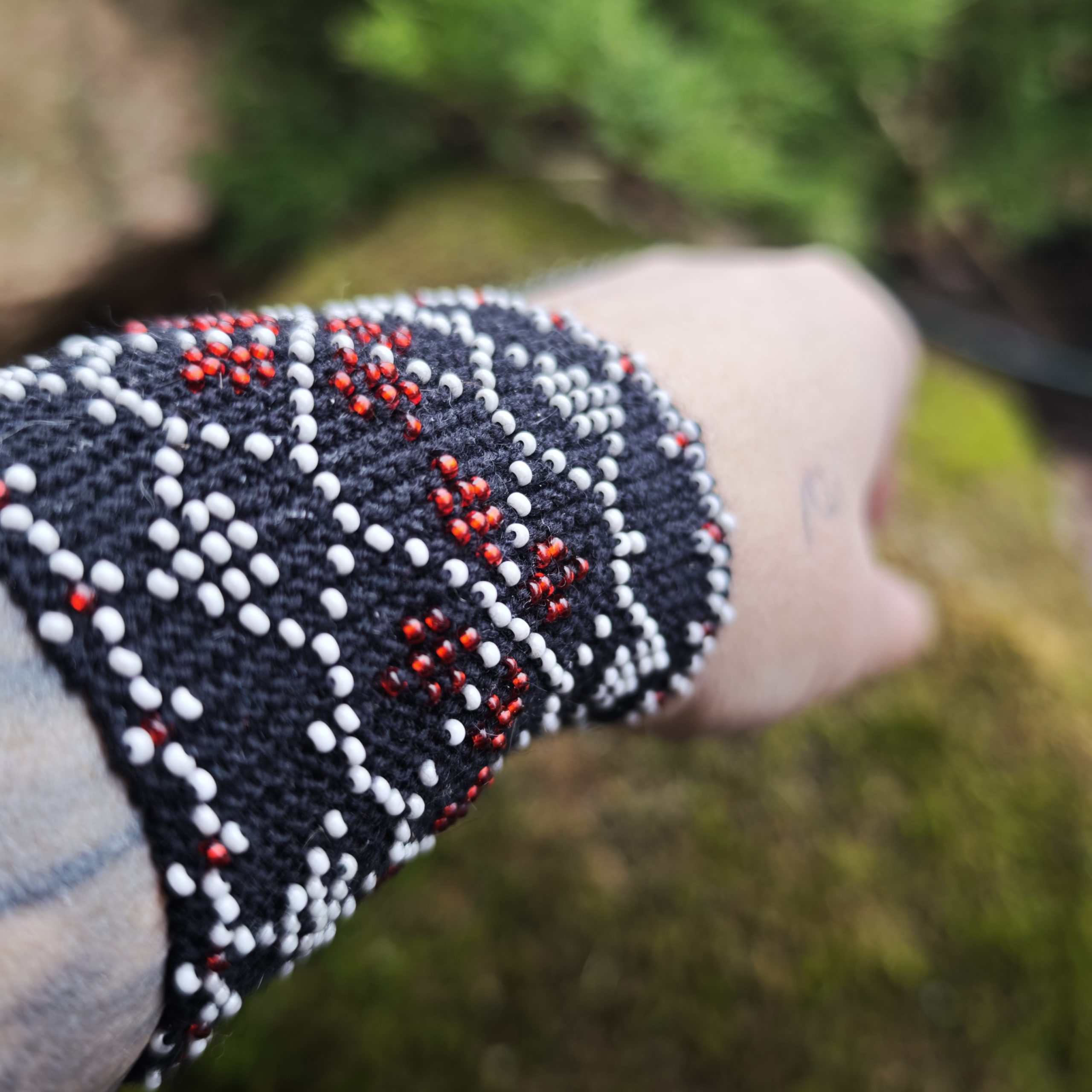 Pärltikandiga kätised, randmesoojendajad. Sobib kenasti ka täiskasvanu käele, venitades laius 10 cm.