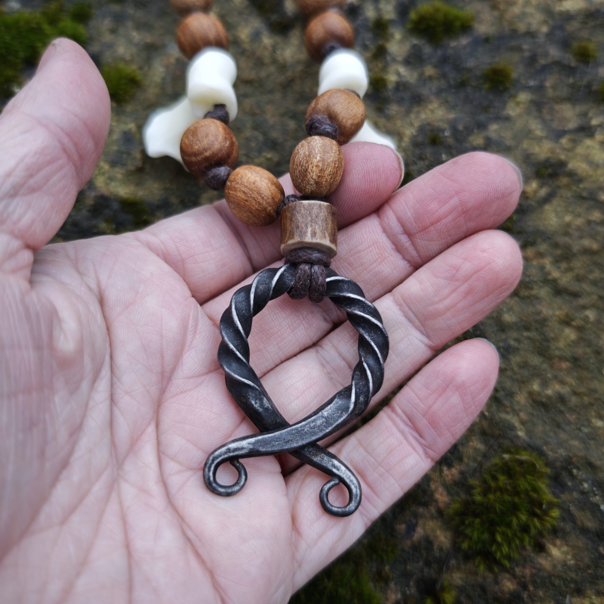 Sepistatud kaitsesilmus, karu varbaluud, jalaka puit. Reguleeritav nöör.