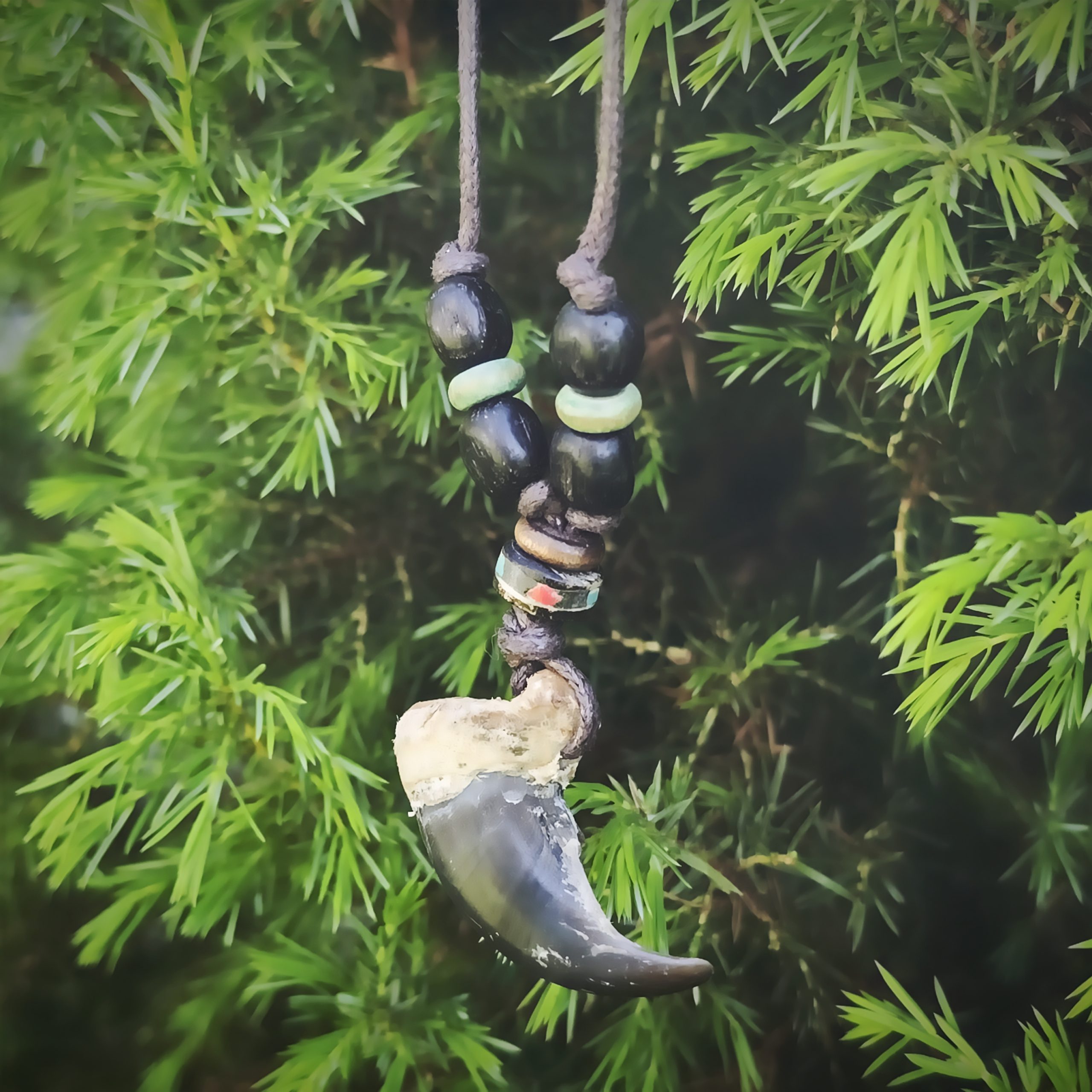Väiksem karuküünis, musta tamme helmed. Küünise suurus ca 4cm